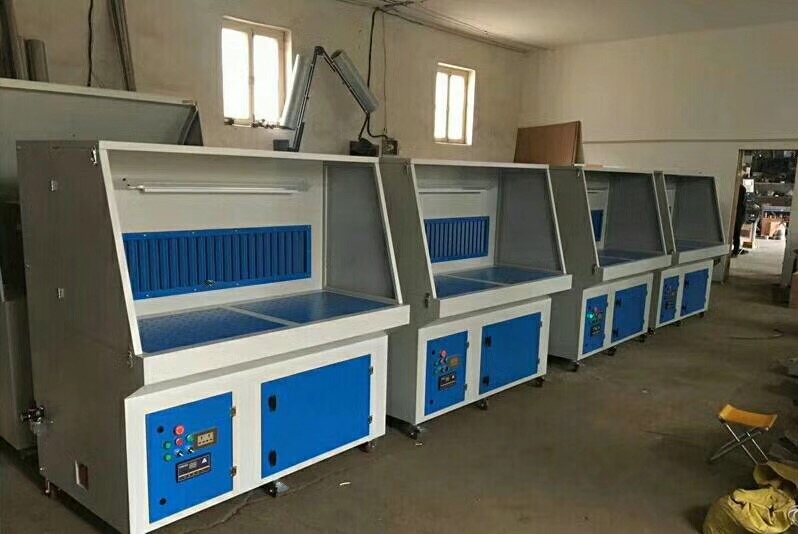 打磨拋光工作中,各類有害煙塵和粉塵通過打磨平臺進(jìn)入平臺內(nèi),在平臺內(nèi)進(jìn)風(fēng)口處設(shè)有火花分離裝置,可攔截進(jìn)入氣流內(nèi)含有的大顆粒